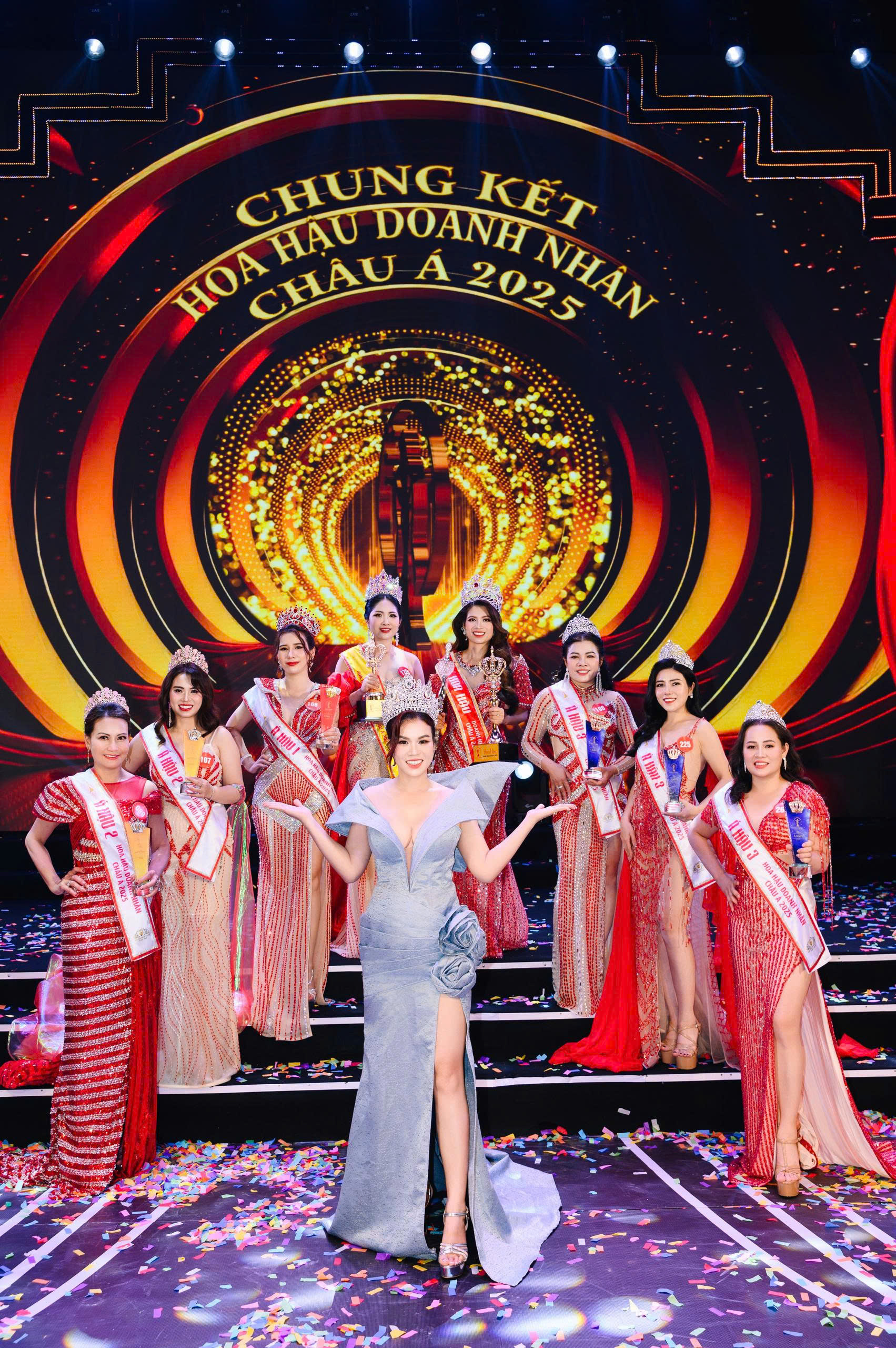 Cuộc thi Hoa hậu Doanh nhân Châu Á 2025 khép lại với Top 8 thí sinh xuất sắc nhất, những gương mặt tiêu biểu hội tụ đủ các yếu tố nhan sắc, trí tuệ và bản lĩnh của nữ doanh nhân thời đại mới. Bao gồm: Tân Hoa hậu Doanh nhân Châu Á 2025 xướng tên nữ doanh nhân Ban Thị Thu (SBD 199, Hà Nội cùng hai giải thưởng phụ Người đẹp Công sở và Người đẹp Tài năng); Hoa hậu Nhân ái thuộc về nữ doanh nhân Trần Thị Phương (SBD 175, Ninh Bình cùng hai giải thưởng phụ Người đẹp Dạ hội và Người đẹp được yêu thích nhất); Danh vị Á hậu 1 gọi tên nữ doanh nhân Đinh Thị Hiệp (SBD 168, Đà Nẵng cùng giải thưởng phụ Người đẹp hình thể); hai danh vị Á hậu 2 thuộc về nữ doanh nhân Nguyễn Kim Ngọc (SBD 089, Hà Nội cùng giải thưởng phụ Người đẹp áo dài) và Nguyễn Hương Giang (SBD 107, Hà Nội cùng giải thưởng phụ Người đẹp truyền thông); ba giải Á hậu 3 là của nữ doanh nhân Đỗ Thị Phương Liên (SBD 225, Ninh Bình), Phan Thị Ánh Nga (SBD 268, Hà Nội) và Phạm Thị Lan (SBD 198, Hà Nội).