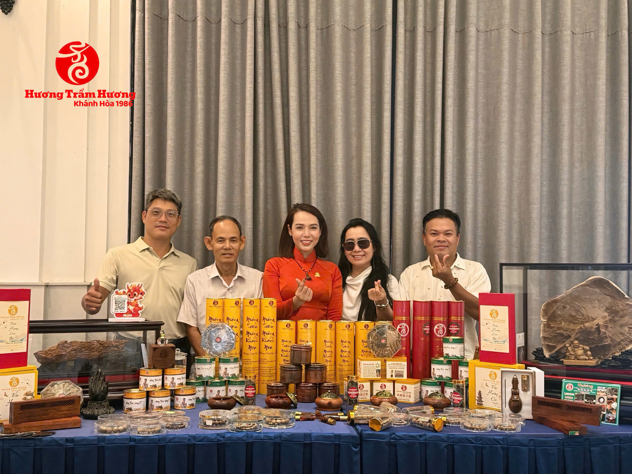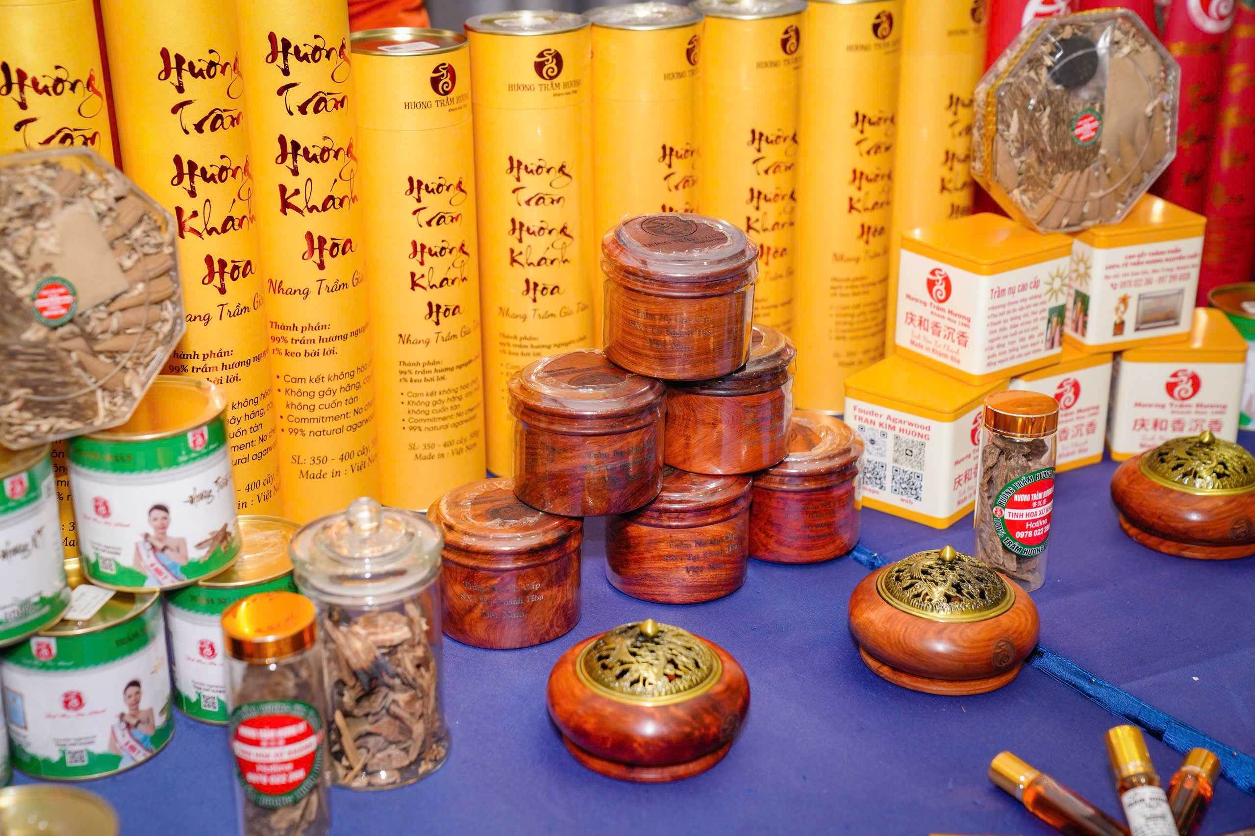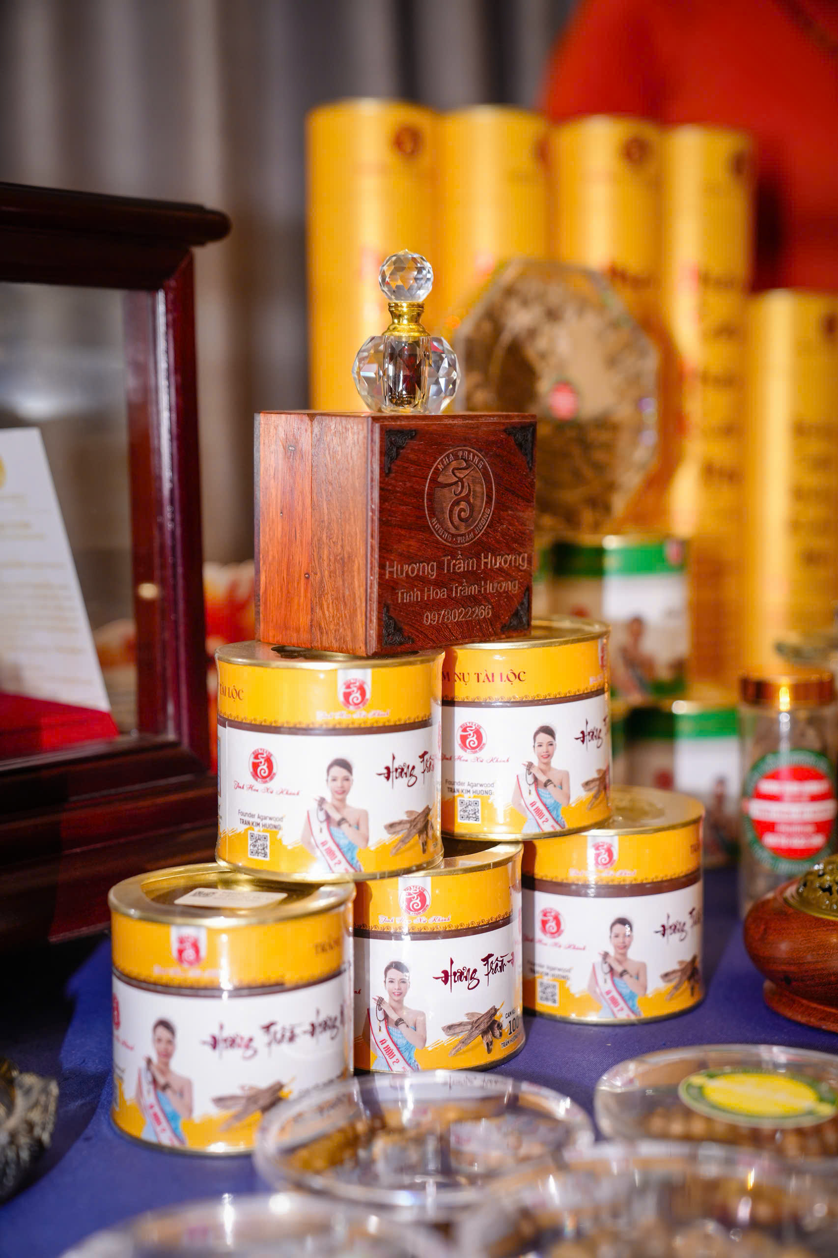 Tại khu vực trưng bày, nhiều sản phẩm trầm hương tiêu biểu được giới thiệu đến đại biểu và du khách, trong đó có các dòng sản phẩm tinh tuyển của thương hiệu Hương Trầm Hương Khánh Hòa do Á hậu Trần Kim Hương sáng lập.