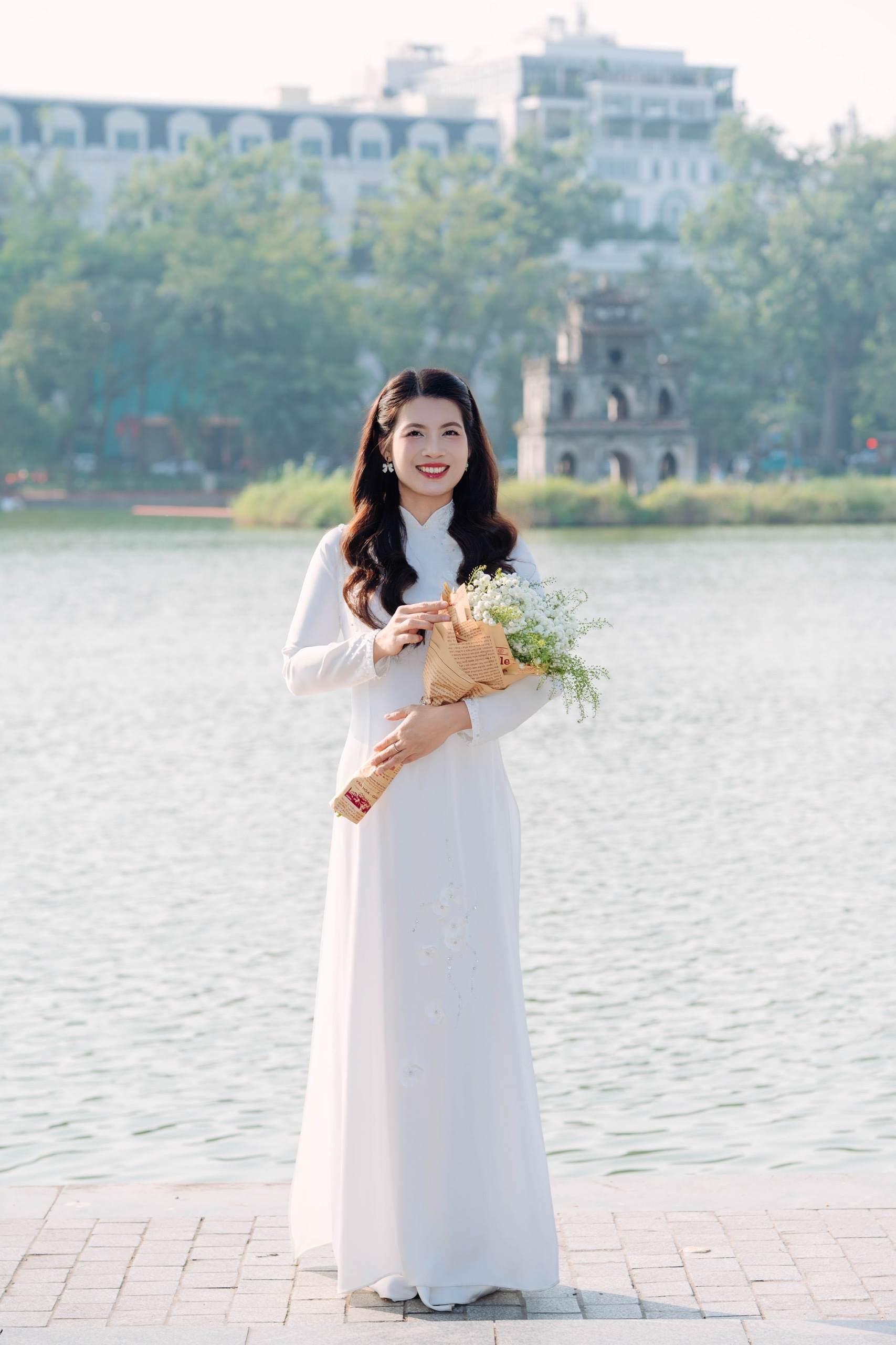 Khoác trên mình tà áo dài trắng thanh thuần, Hoa hậu Ban Thị Thu khẽ bước giữa đất trời Thủ đô cổ kính. Dáng áo mềm mại ôm trọn nét duyên thầm, tôn lên vẻ đẹp thanh xuân nền nã, e ấp, như được trở về thời con gái đương độ xuân thì. Ở nàng hậu ấy, người ta không chỉ nhìn thấy nhan sắc, mà còn cảm nhận được một khí chất rất riêng của một người con gái Kinh Kỳ.