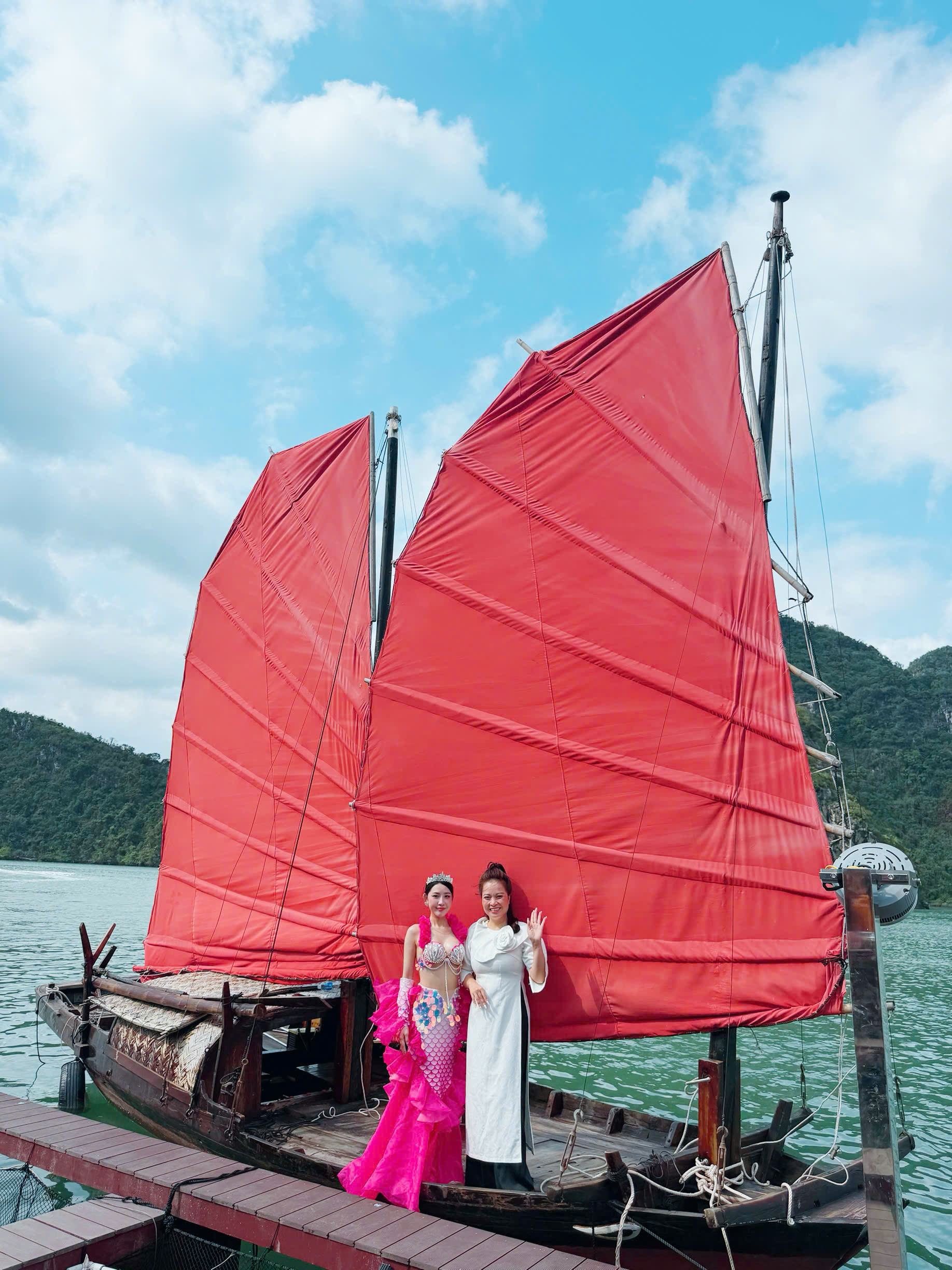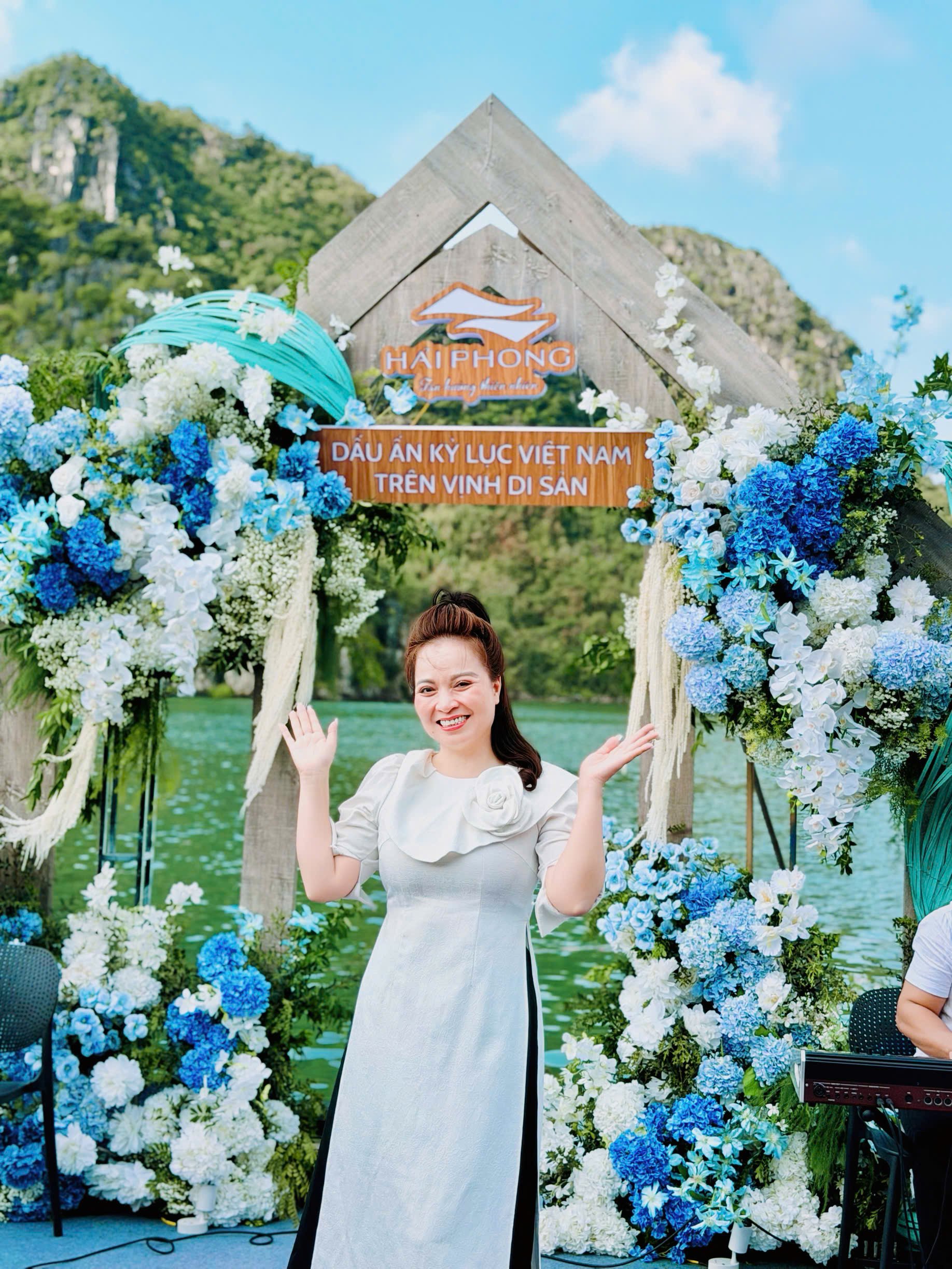 Hoa hậu Nhân ái Ngô Thị Hoàng Ngân rạng rỡ tham dự lễ xác lập Kỷ lục Việt Nam tại Vịnh Lan Hạ (Ảnh: NVCC)