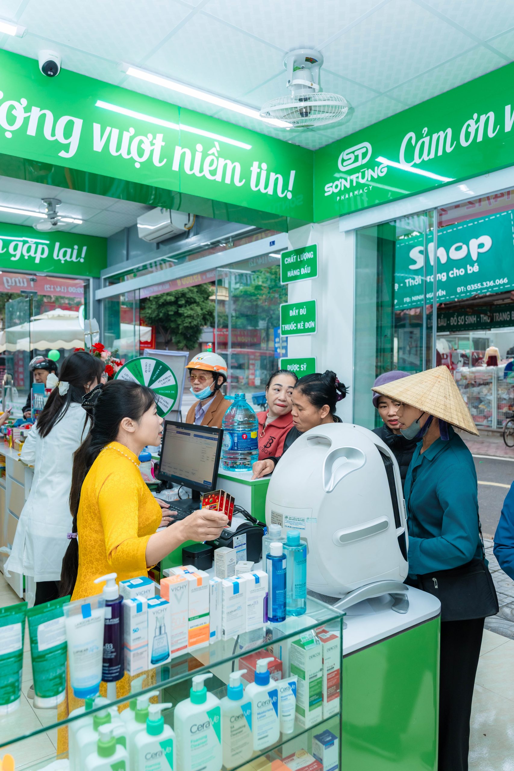 Không gian mới của Nhà thuốc Sơn Tùng được đầu tư đồng bộ, khoa học, mở rộng hệ sinh thái dịch vụ chăm sóc sức khỏe 5 sao. Bên cạnh thế mạnh cốt lõi là tư vấn và cấp phát thuốc Tây y đúng chuyên môn, hiệu thuốc còn tích hợp các giải pháp dinh dưỡng khoa học, chăm sóc sức khỏe chủ động và làm đẹp an toàn.